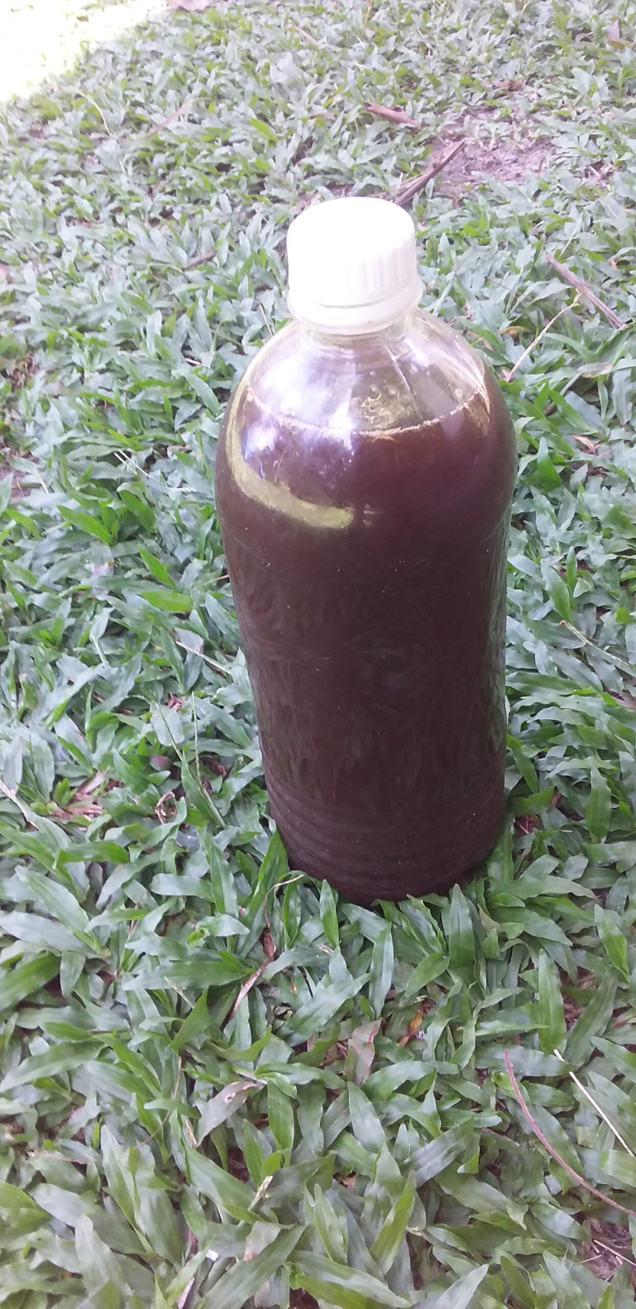 Fertizante líquido obtido através da compostagem de resíduos orgânicos domésticos. Diluir 1 parte para 10 de água. Regar ou pulverizar sobre as plantas evitando horarios de sol a pino.