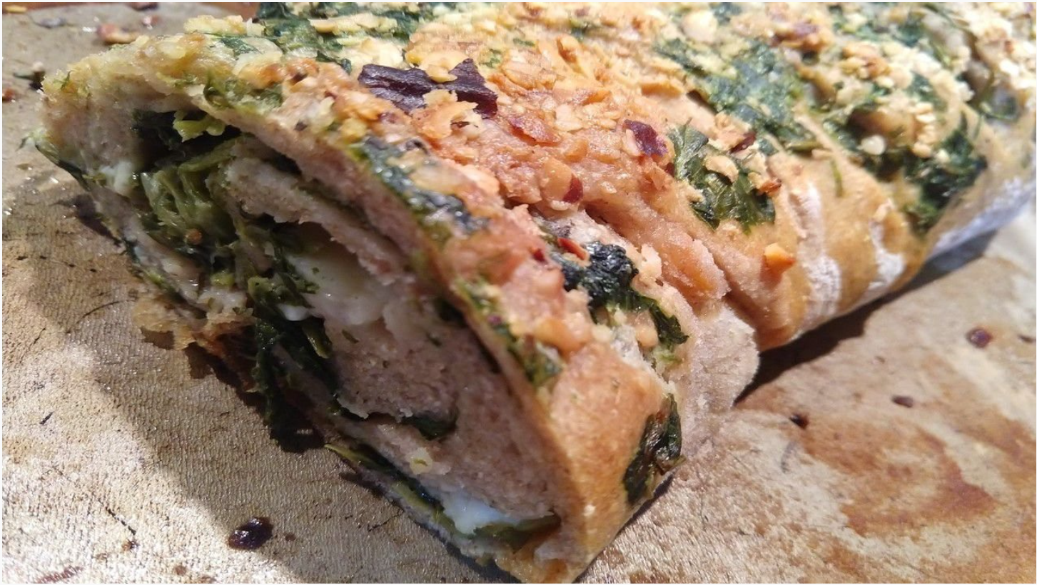 Pão artesanal feito com fermentação natural, trigo, azeite de oliva, manjericão, orégano e tomilho.